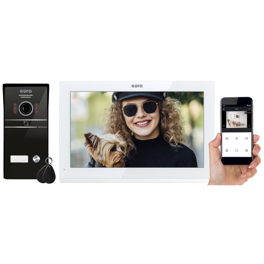 WIDEODOMOFON "EURA" VDP-30C5 - DC 15V, grafitowy, LCD 8", WiFi, otwieranie 2 wejść,...