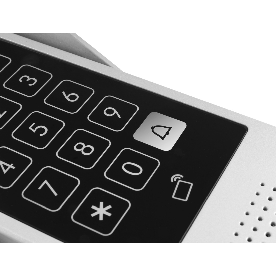 Kaseta zewnętrzna wykonana jest ze stopu aluminium i tworzywa sztucznego, odpornego na opady atmosferyczne dodatkowo zabezpieczony daszkiem. Kasetę wyposażono w kamerę rejestrującą obraz w rozdzielczości 700 TVL z obiektywem o polu widzenia 53º. Wejście na posesje może być realizowane przy użyciu dotykowego szyfratora poprzez wpisanie poprawnego kodu lub za pomocą czytnika zbliżeniowego obsługującego breloki i karty. Dodatkowo kaseta zewnętrzna posiada oświetlenie nocne w postaci 5 białych diod LED oraz czujnik zmierzchowy aktywujący automatycznie diody przy niedostatecznym oświetleniu.