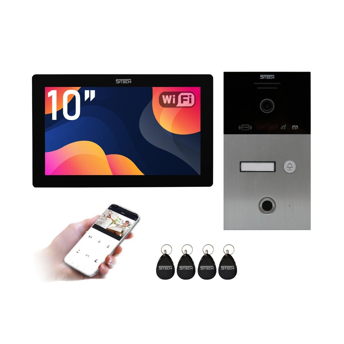 5TECH Wideodomofon cyfrowy TWIN Monitor VIRGO 10 czarny Stacja bramowa 82253 czytnik RFID odcisk palca