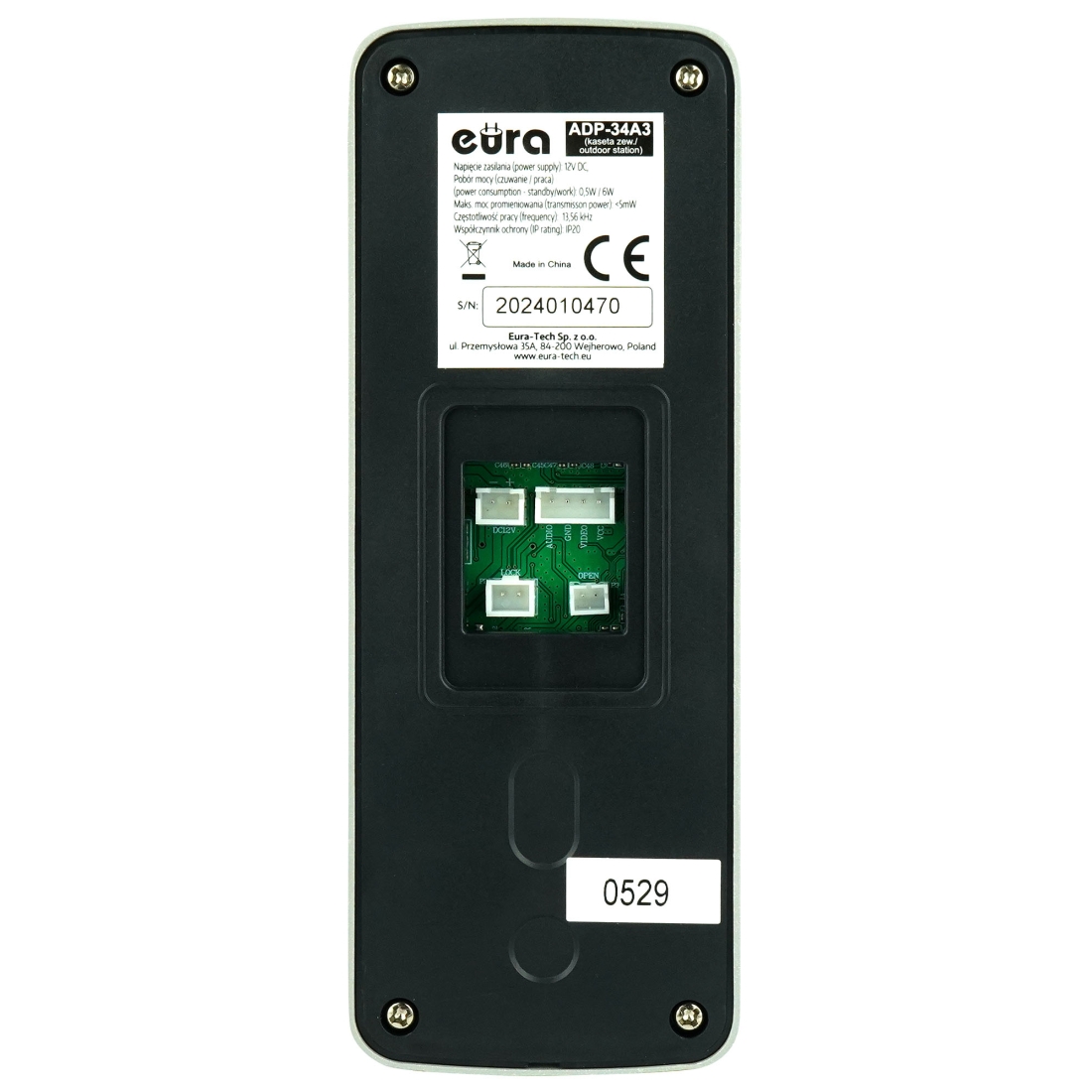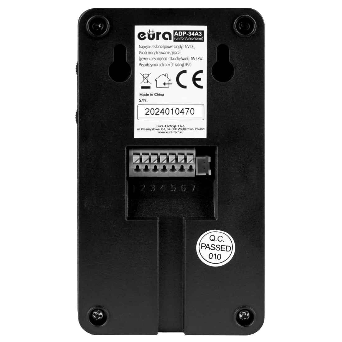 DOMOFON "EURA" ADP-34A3 - czarny, jednorodzinny, głośnomówiący, obsługa 2 wejść, szyfrator, czytnik zbliżeniowy
